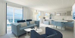 A refined ambiance is enhanced by the quality of the workmanship and materials: white Corian counters in the lobby contrast with the warmth of leather to recall a boat’s hull, while the central sculpture of enamelled pieces takes its inspiration from the sea. In the lounge bar, the carpet picks up a tennis stripe theme symbolising a certain idea of cruising, one synonymous with French elegance and a chic seaside spirit.