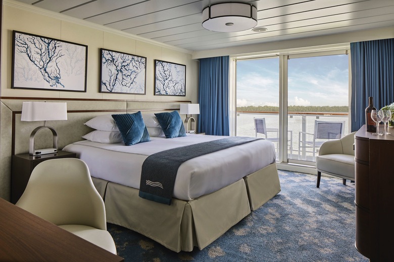 Deluxe Balcony staterooms are conveniently located on the second deck and provide maximized comfort. Featured are floor-to-ceiling sliding glass doors with a private balcony where you can sit and enjoy spectacular views of the surrounding landscape. At 316 sq. ft., these staterooms also offer a sitting area, desk, and full-size bathrooms. All staterooms include individual climate control systems, in-room Keurig coffee brewers, ample storage, an array of toiletries, complimentary WiFi, and Satellite TV.
